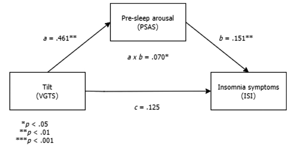 • The negative effect of tilt on insomnia symptoms is indirect: tilt causes pre-sleep arousal, in turn causing insomnia.