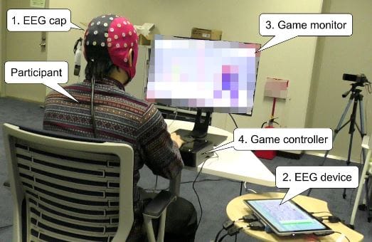 In doing so, the researchers had 20 participants (age 18-35) play ranked matches in Street Fighter V. All of them were Grand Master (top 0.26%). They played for about 3h over 3 days (~9h in total). The figure below shows the setup.