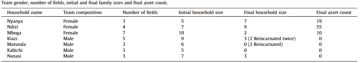 "Overall the outcomes for the female teams were significantly better than those of the male teams by these measures, with fewer household fatalities and greater final assets." [1]
