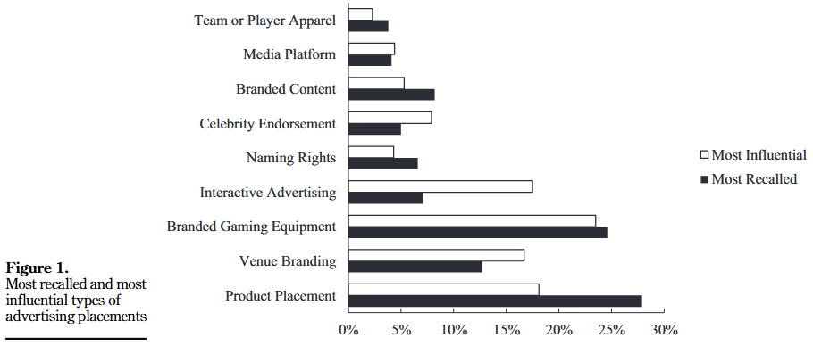Now, let's go back to branding and advertising. The figure below shows the most recalled and most influential types of advertising placements in esports.