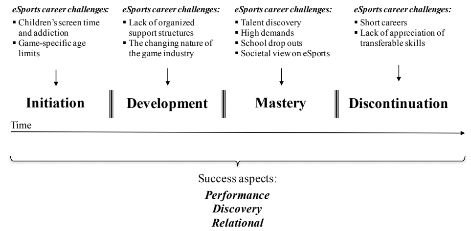 The last phase occurs when the player (intentionally or unintentionally) withdraws from Esports. Players either retire or switch to something else (inside or outside the industry). This stage is the discontinuation stage and marks the end of the players' career.